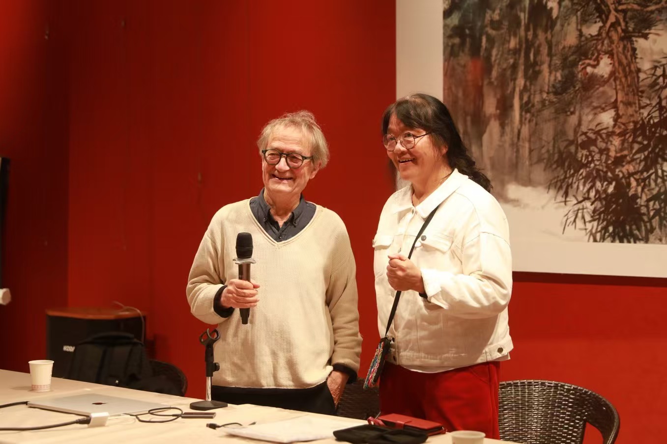 乔治·史威兹格贝尔(Georges Schwizgebel)是当代动画艺术大师,以其独特、风趣且形式壮美的作品闻名,他擅长用独特的循环与变形的动画技法融合形式主义叙事与视听元素进行动画创作。1974年,他的第一部作品《伊卡洛斯的飞行》诞生,至今已拍摄21部影片,并多次受邀参加回顾展,在戛纳、安纳西等多个国际电影节屡获殊荣,其中《奔向深渊》(1992)被誉为动画电影经典。2017年获安纳西国际电影节终身成就奖,2018年入选奥斯卡公司院士并赢得瑞士电影协会终身成就奖,2019年获法国“艺术文学军官勋章”,2020年出版作品集并再获萨格勒布国际电影节终身成就奖。交流中,乔治·史威兹格贝尔回顾了自己多年的动画制作经验,分享了他在创作过程中的心得体会并播放了他所制作的手绘动画,主要是使用丙烯颜料或水粉,逐帧画在赛璐珞上,并使用影像转描技术,其形式具有强烈的流动感和音乐性。动画放映结束后,员工和老师积极与乔治大师交流,不同想法跨维度的碰撞,在美育空间放射耀眼火花。