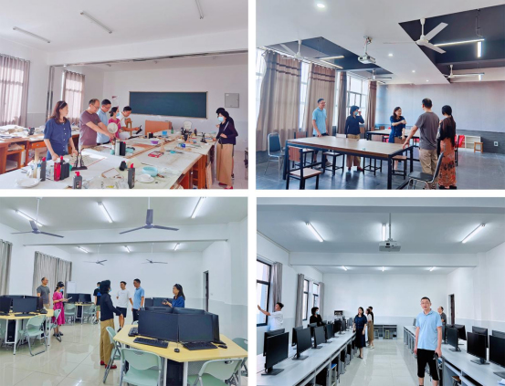 在走访检查过程中,院领导仔细检查了各个教室的桌椅、多媒体设备等,针对教室缺少桌椅的情况,已联系后勤与安全事务综合服务中心解决。检查教室及机房时,院领导特别强调设备的安全使用规范,以及舒适的学习环境营造。嘱咐各班委打扫教室时注意安全,爱护教室电器设备,并在上课前与任课老师联系,按照课程要求,提前领取教学用品、准备绘画用具等,确保9月8日开学第一堂线下课顺利进行。