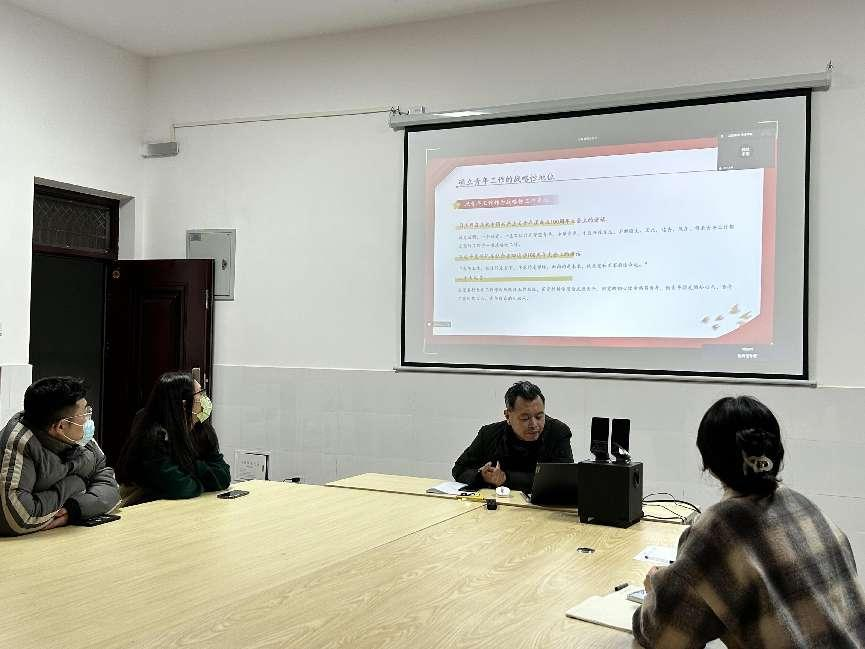 当可分为五个部分,杜修望同志结合二十大报告,通过课件的形式,向党员同志们进行了系统讲解:确立青年工作的战略性地为、深刻领会青年工作的职责使命、深刻领会青年工作的目标任务、深刻领会青年工作的实践要求及发挥高校在青年成长中的特殊使命等内涵进行了阐述,希望同志们深入领会,振奋精神,不负时代使命,在奋斗中展现时代风采。