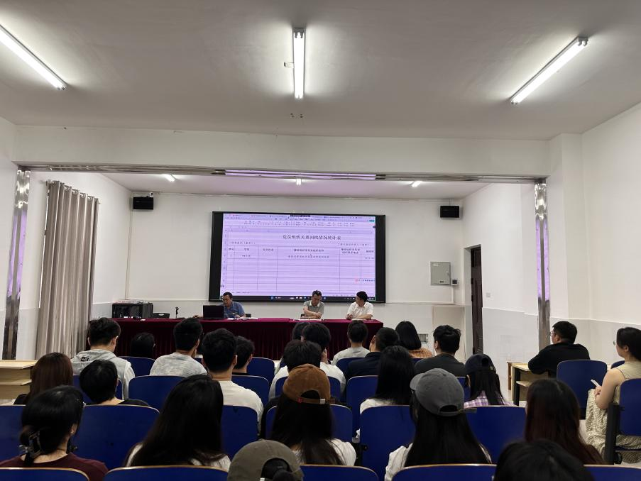 此次会议有三项议程,会议第一项是观看视频,毕业生党员集中观看了《忠诚与背叛-2023湖南正风反腐警示录》与《航天员刘阳的太空日记》两个视频,一反一正,提示毕业生党员走好人生路,迈进新征程。