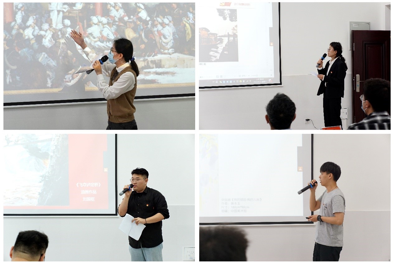 演讲比赛共有16名研究生党员参加,他们所选取的党史故事来自于16幅红色题材的美术作品,他们或取材于中国革命战争中的伟大场景,如秋收起义、百团大战,或取材于社会主义建设中的火热场景。艺术家们取笔成史,以艺术家的视角,用他们的画作,讴歌了百年时代的伟大创举,给人民以巨大的鼓舞,选手们将其中的伟大精神内涵转换成慷慨激昂的演讲,赢得了评委和观众的阵阵掌声,倾情展现了党员同志们一心向党、永远跟党走的坚定决心。
