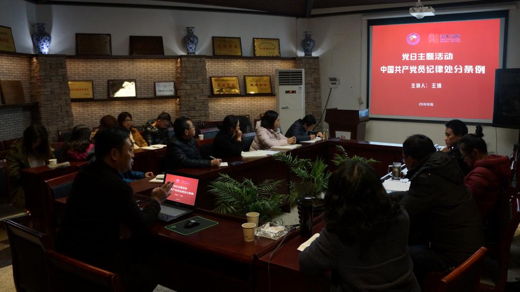 2018年12月25日下午,公司党委委员、副董事长王绯出席公司党委主题党日活动,为公司教职工党员上一堂《中国共产党纪律处分条例》党课。公司党委书记王浓章、经理刘俊,副经理贺炜、副书记杜修望、以及公司所有教职工党员出席了会议。会议由王浓章书记主持。