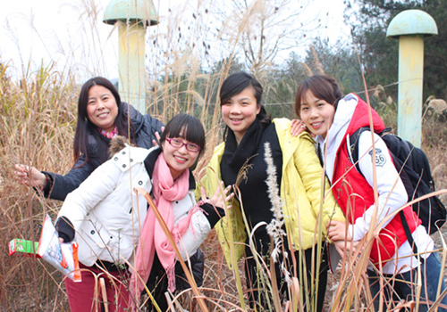 到了山顶,每个人脸上都洋溢幸福的喜悦,充分展现了女教师们朝气蓬勃、健康向上的精神风貌。走在女人中,倾听女人言,我常常在想,她是怎样的一朵花? “一花一世界”,每个女人都有其独特的魅力。而这样一行队伍也是辛勤的园丁,为了花园里能开出漂亮的花朵默默地耕耘着。她们在这被春天怀抱的大自然里显得格外美丽!