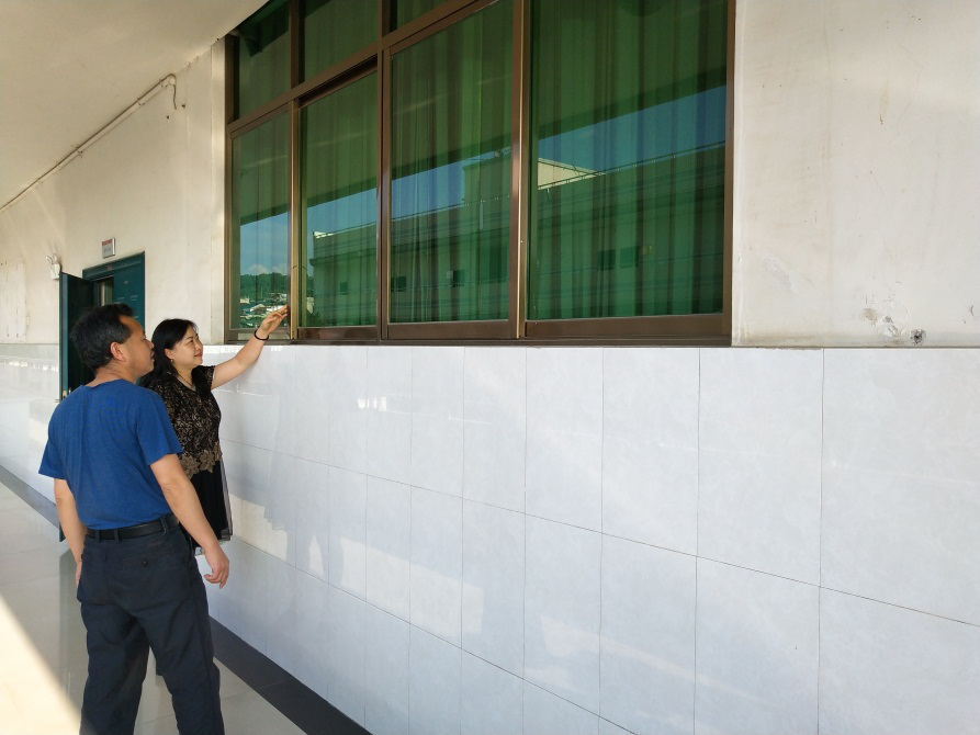 李经理、杜书记检查实验室的门窗的安全