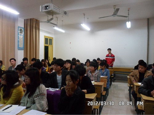 2012年3月30日晚,伟德victor1946官网登录团总支员工会在第二教学楼召开员工会工作调查报告交流会,会议总结了调查组提供的相关问题,并根据这些问题向与会者征集大量意见与建议。
