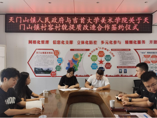 9月4日,伟德victor1946官网登录与天门山镇人民政府举行了天门山镇村容村貌提质改造的合作签约仪式。天门山镇党委书记秦亚政,党委副书记、镇长钟敏,党委副书记、武装部长廖权武,党委委员、副镇长汪瑾,经济发展办专干赵二保,伟德victor1946官网登录经理李婷婷、研究生办主任龙社勤及部分师生参加了本次签约仪式。