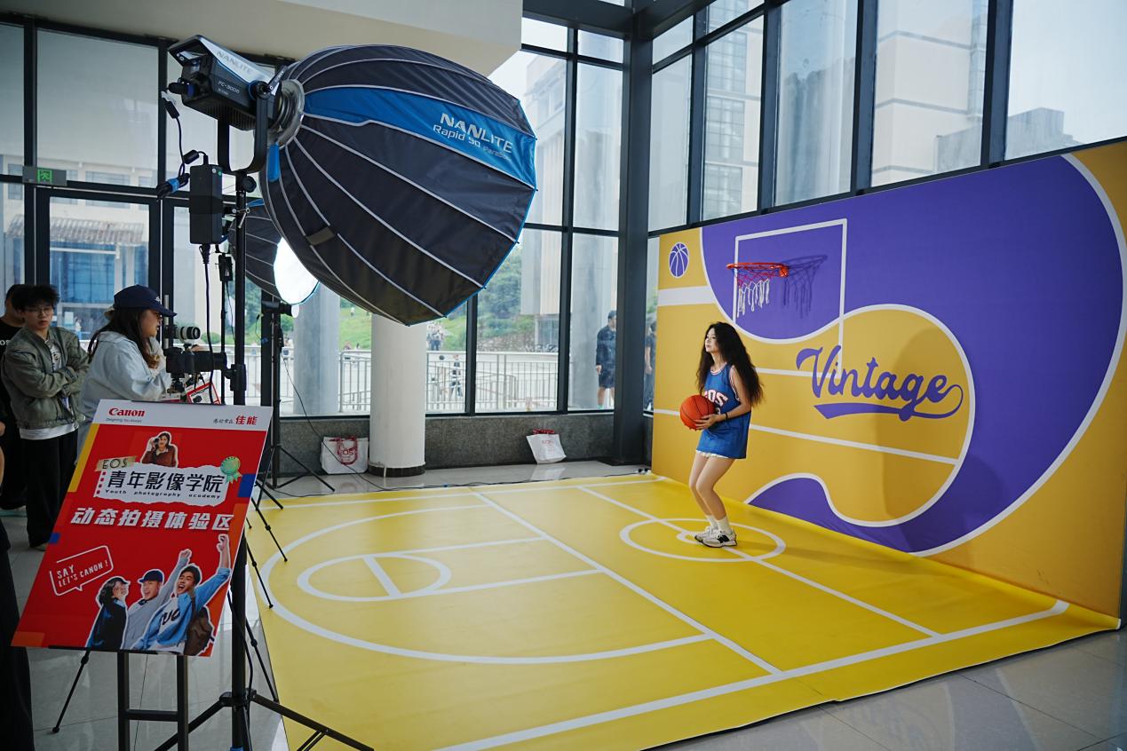 佳能团队在礼堂入口精心设置了动态摄影区、静态摄影区及AR体验区,吸引众多员工驻足体验,通过实操互动,同学们直观感受了前沿摄影器材的性能与魅力,为后续理论学习埋下实践的“种子”。佳能(中国)有限公司武汉分公司湖南地区市场总监张婕为师生们作了佳能公司前沿设备分享。