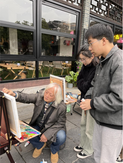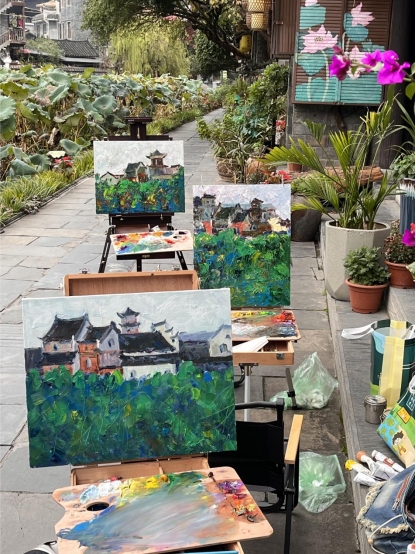 在一周的时间里,毛光辉将课堂搬到了湘西的乡村、山野,引导员工们不仅在千年古城的石板街巷、吊脚楼前,苗寨特色民居以及乡村的田园风光中寻找灵感,还强调关注湘西的自然景观和人文景观,以及乡村振兴带来的发展变化。他鼓励员工们用画笔去表现湘西的美丽风光,同时也要注重挖掘乡村的文化内涵和历史传承。员工们通过实地观察和体验,不断完善观察物象、取景构图、造型表现等,逐渐掌握了户外写生的方法和技巧,用画笔记录下湘西的自然风光和美丽乡村的点点滴滴。