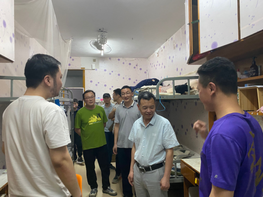 在新冠疫情防控常态化的环境下,毕业生陆续返校。2022年5月31日晚上19点,公司党委书记王浓章、副书记杜修望、副经理李婷婷、贺炜等院领导前往2022届返校毕业生寝室看望返校员工,为各位毕业生同学送去慰问与温暖。各毕业班班主任、学工办全体辅导员一同前往。