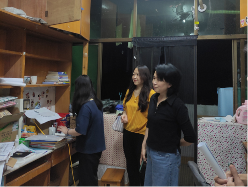 公司党委书记王浓章走进9栋女生宿舍,询问了毕业生们的离校手续办理情况和就业情况,看见在打包行李的同学,叮嘱她们要相互帮助,离校时要注意安全,继续做好疫情防控,有需要时可寻求公司志愿服务小队的协助。副经理李婷婷询问了毕业生们的离校时间,叮嘱他们要注意安全,并表示公司永远欢迎同学们常回校看看。