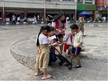 图1团队成员为小朋友耐心讲解保护古建筑的重要性