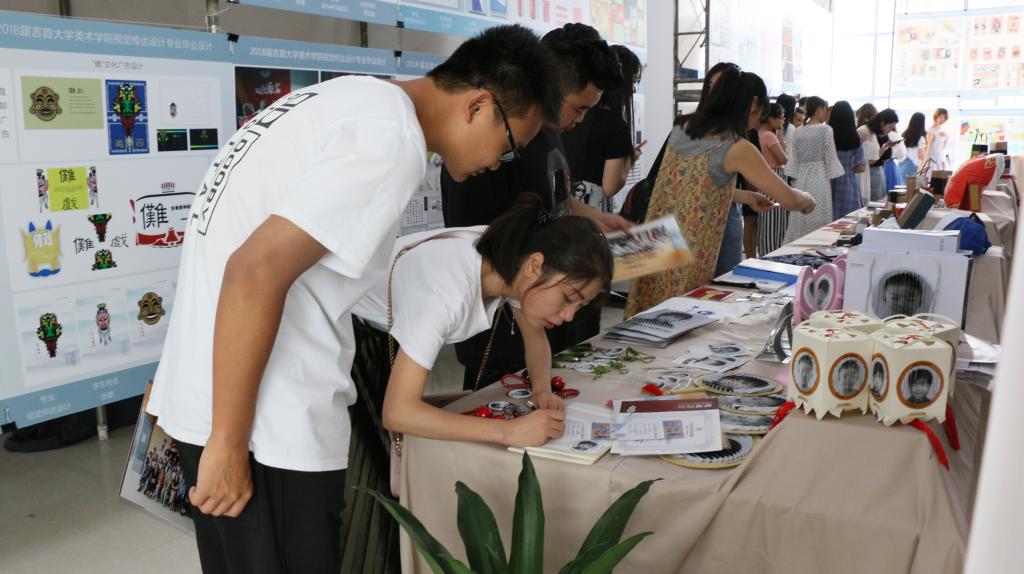 2018年6月5日,2018届毕业作品展在图书馆展出,上午十点举行了简短的开幕仪式。一年一度的伟德victor1946官网登录毕业作品展,不仅是同学们四年学习成果与公司教学效果的检验,更是伟德victor1946官网登录承担大学责任、传播审美文化理念、提升大众审美修养的重要平台,为张家界的文艺创作与设计发展从高原走向高峰添砖加瓦。