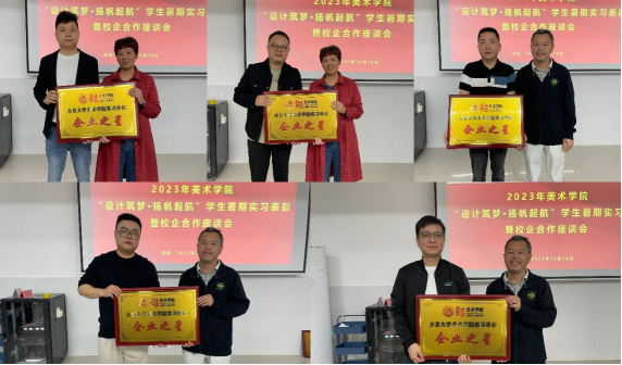会议第二部分:企业座谈。杜修望书记和龙社勤主任分别为亿达装饰有限责任公司、万美装饰有限责任公司、东家乐装饰有限责任公司、湖南力禾装饰有限责任公司、大有装饰有限责任公司共五个企业进行伟德victor1946官网登录实习单位“企业之星”授牌。