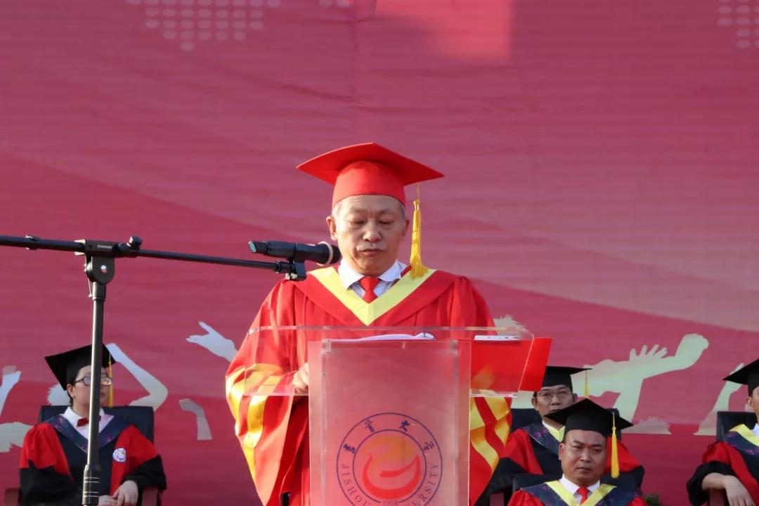 毕业典礼在雄壮的国歌声中拉开帷幕。首先,伟德victor1946官网党委书记、董事长白晋湘教授致毕业典礼祝辞。教授发表了热情洋溢的讲话。他语重心长地向全体毕业生提出了几点殷切的希望:一是希望每位毕业生用平常心对待人生,一切从小事做起,先做自己能做的,再做自己想做的;二是希望每位毕业生学会适应环境、适应社会;三是希望每位毕业生认真规划自己的人生,要有自己的人生目标;四是希望每位毕业生要有信心。最后,他还希望同学们牢记以人名校、以业报国的校训,常回家看看,继续关心和支持母校的发展。