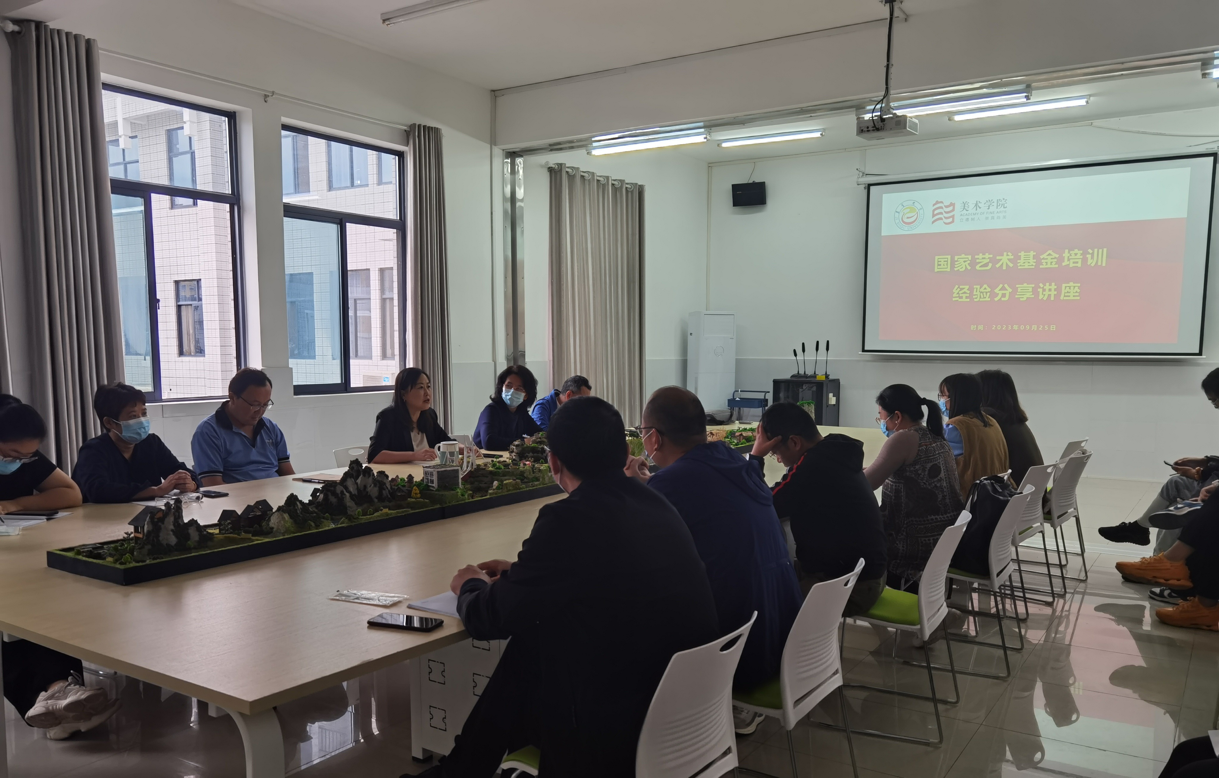 9月25日下午三点,在公司会议室召开了国家艺术基金培训经验分享讲座,讲座由经理李婷婷主持,主讲人为公司青年教师伍玺臻、李文佳,全体教师参会。