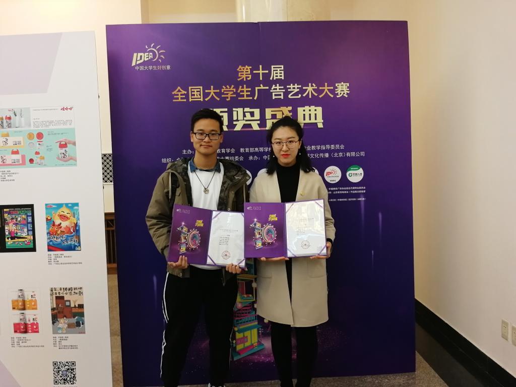 公司党委副书记杜修望、视觉传达教研室主任李波荣为他们颁奖。颁奖过程中杜书记表达了对获奖同学的赞赏,并期待他们在下次的比赛中继续努力。颁奖结束后赵忠鼎老师对历届大广赛获奖的优秀作品进行了讲解与分析,并指出我们与全国一等奖之间的不足与差距,期待我们的下一次比赛可以有新的突破!