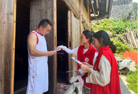 图2同学们走进村民家中发放宣传手册并耐心讲解