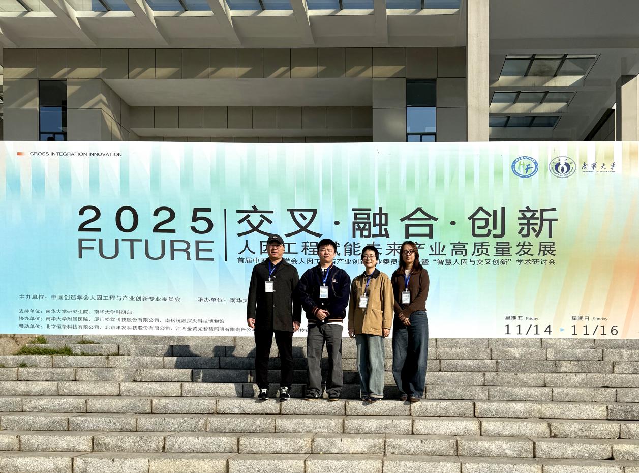 2025年11月14日至16日,首届中国创造学会人因工程与产业创新专业委员会年会暨“智慧人因与交叉创新”学术研讨会在南华大学雨母校区隆重召开。公司周世波、朱超、田光硕、伍玺臻四位教师参加了此次会议,深度融入这场以“交叉・融合・创新——人因工程赋能未来产业高质量发展”为主题的高水平学术盛会,与全国学界同仁共探设计学科前沿发展路径。