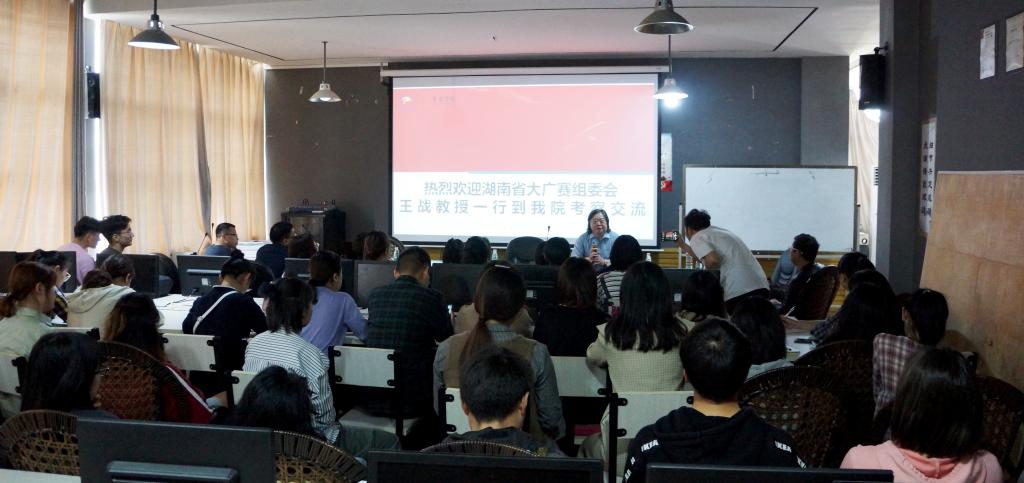全国老员工广告艺术大赛湖南分赛区组委会秘书长王战教授、组委会单文胜教授一行于4月9日莅临公司研究第十一届大广赛的评审工作并与公司教师、员工代表座谈交流。张家界校区教科办主任李爱华、伟德victor1946官网登录经理刘俊、图书馆徐险峰副馆长陪同考察。