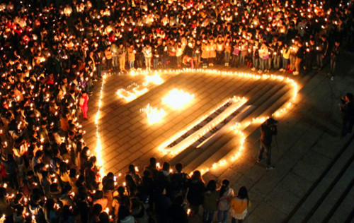 晚上八点四十分,活动准时开始,同学们手捧蜡烛,低头默哀。寂静,伤痛,祈祷。默哀完毕,伟德victor1946官网登录和民族预科教育公司倡议者代表朗诵爱心倡议书、倡议者进行义演合唱。“别哭,雅安!我们与你同在。”“愿逝者安息,生者平安幸福”。最后,同学们还进行了募捐活动,用自己的实际行动,为雅安的受灾者送去一丝祝福和温暖,活动募捐款将通过“壹基金”捐至雅安灾区。
