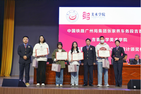 随后,中国铁路广州局集团有限公司张家界车务段吉首东车间站党总支书记王建伟为获奖的员工团队颁奖,并向给予吉首东站“吉雅”服务品牌LOGO设计提供了大力帮助的师生们表示感谢,他说道,通过这次的品牌的设计和宣传,充分发挥了双方的特色优势,他希望未来与伟德victor1946官网登录有更深更广的合作。