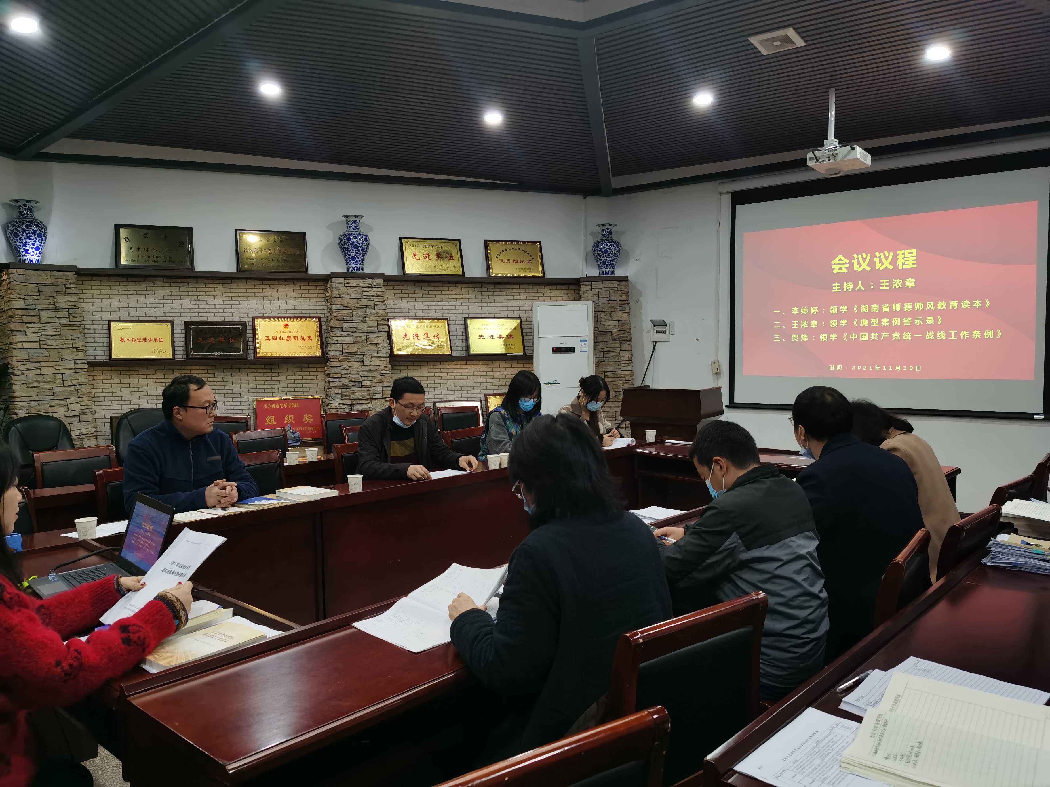 11月10日下午,公司召开《湖南省师德师风教育读本》、《典型案例警示录》及《中国共产党统一战线工作条例》集中学习,学习由公司书记王浓章主持,公司全体行政工作人员参加了本次学习。
