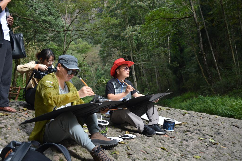 仪式结束后,30位受邀名家驱车前往张家界森林公园的金鞭溪进行写生,金鞭溪流域的溪流、台地、石墙、河谷、嶂谷皆为画家们着力表现的对象,从搜尽奇峰打草稿到胸有成竹地自如表现,每一步都让观者感受到艺术家的神思与艺术创作的无穷魅力。