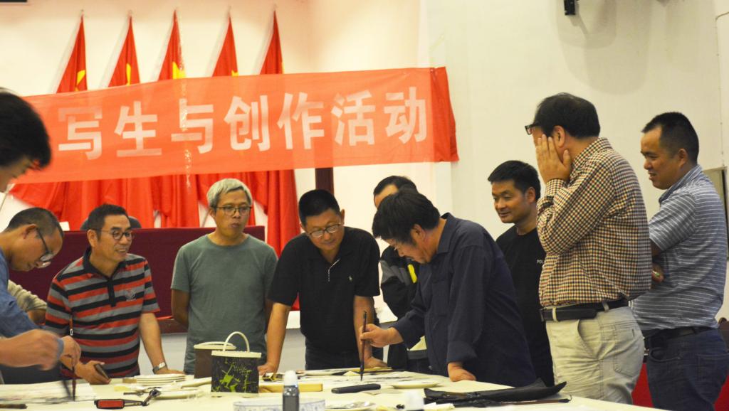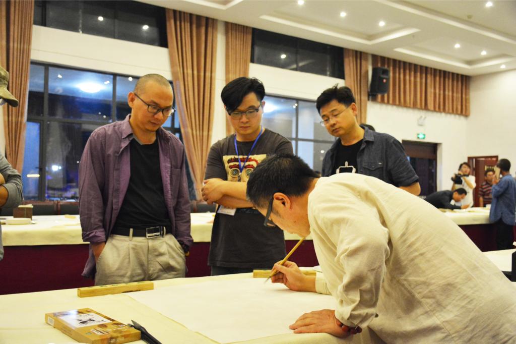 为了给画家们提供一个相互深入切磋的平台,当晚7点30分,主办方专门举办“2018‘醉美张家界’全国名家美术创作笔会”,30位画家挥毫泼墨,或独立或集体创作,历时3个小时,共完成20多件即兴国画作品。