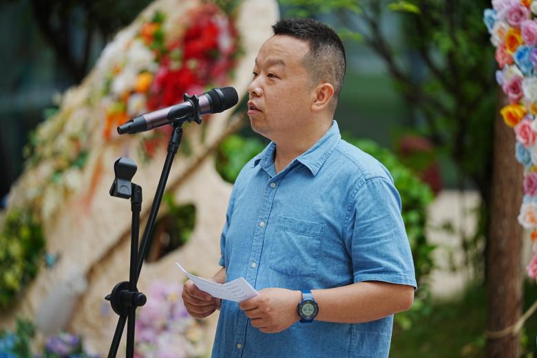 视觉传达设计教研室主任李波荣代表教师发言,他希望同学们无论身处何种境遇,大家时刻保持“初心”,不仅是对专业的热爱与执着和对创意的追求与探索,更是对“真善美”的坚守与传播。