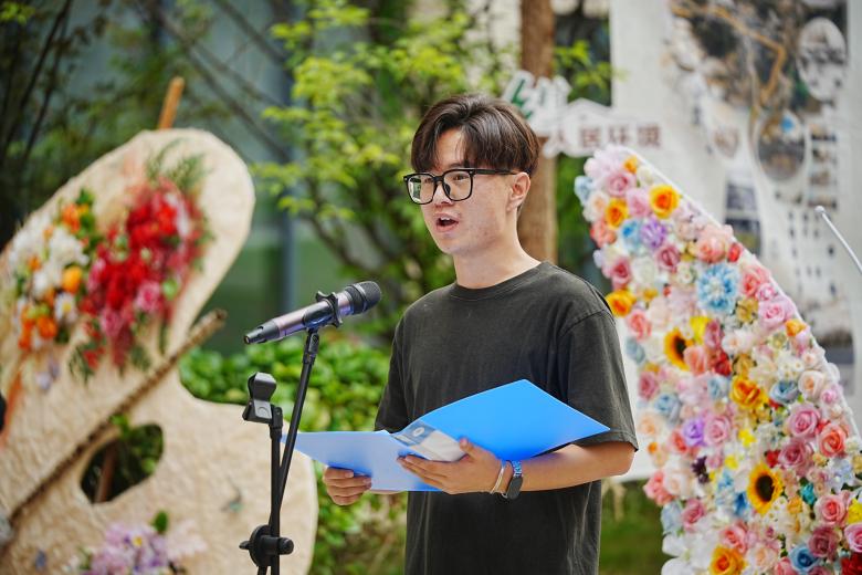 2025届数字媒体艺术专业毕业生宋骏鹏代表本科生发言,他回顾了四年的求学时光,祝愿所有同学始终牢记“以人名校,以业报国”的校训,用技术传递思想,用艺术照亮人生。