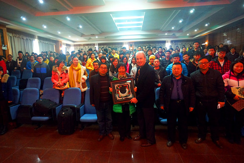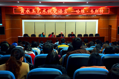 哈维先生1985年以一个美国美术馆馆长和艺术家的身份来到中国,一直潜心研究中国的传统艺术并长期不懈的向美国宣传中国的传统文化。讲座中,他向大家介绍了和黄老的相识,对黄老的一系列作品进行了详细的解读,让在座的师生都受益匪浅。