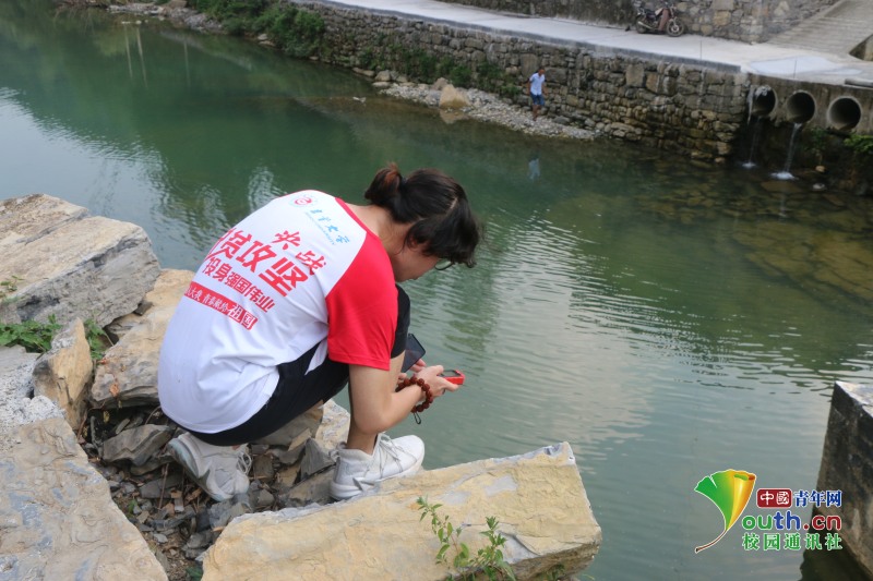 图为志愿者在测量被洪水冲垮的土家族风雨桥,统计的数据供后期对风雨桥进行数字化使用。中国青年网通讯员 李景芬 摄
