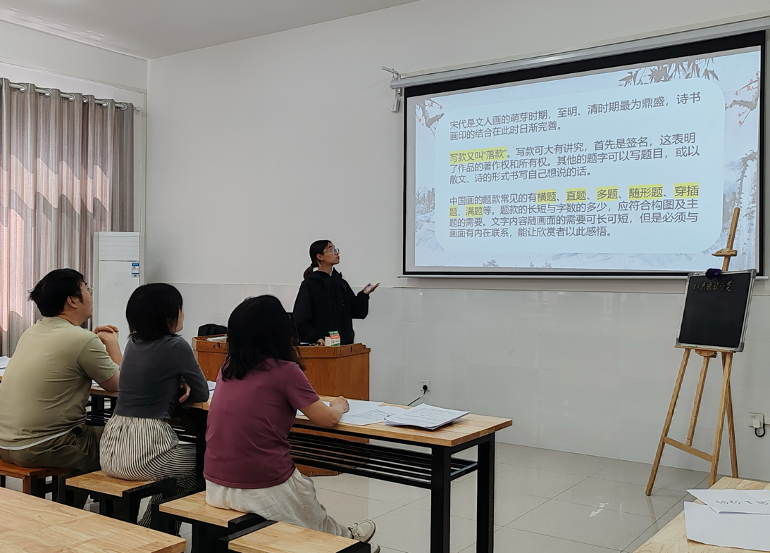 选手试讲完毕后,评委老师一一对本次赛事作了点评,他们充分肯定了选手们在教学设计上的巧思和专业性,同时也针对选手们的不足之处给出相应建议,并且不断勉励同学们要继续努力,不断改进,将教书育人的理念融入具体教学实践的方方面面。最后,美术学(师范)专业教研室主任胡潇文老师作总结发言,希望同学们以竞赛为契机,持续精进教学技能,践行立德树人根本任务。