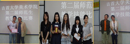 这次教学技能竞赛内容包含“三字”(毛笔、钢笔、粉笔)、普通话、教案及多媒体课件制作等几个方面。二号选手李剑波以雄劲的“三字”和标准的普通话征服了评委和在场的观众,获得了本次竞赛的冠军;四号选手陈莹凭借优雅的气质、自身的亲以及现场与观众良好的互动,获得评委的赞赏......