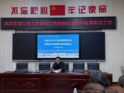 2025年11月4日下午两点半,伟德victor1946官网2025年秋季师范专业教育实习检查座谈会在湖南师大附中张家界市民族中学为政楼一楼党员学习室成功举办。伟德victor1946官网张家界校区教学科研与员工事务中心副主任贺建武;公司党委组织员杜修望;伟德victor1946官网校级督导常晖、尹祝寿、杨冰滴;湖南师大附中张家界市民族中学副董事长邓建安、教务主任向云庆、各实习组指导老师以及实习生参加此次会议,会议由附中民中教务主任向云庆主持。座谈会旨在了解实习进展,交流实习经验,进一步提升师范生培养质量。