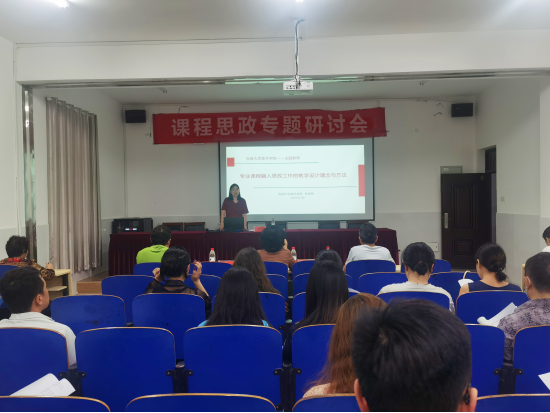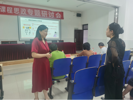 随后,教师们结合课程思政教学实践中的经验和感悟进行了研讨。一方面,就自己的课程思政建设的思路、做法、取得的实际成效、工作落实中存在的问题及今后的工作打算进行了交流;另一方面,就如何挖掘专业课的思政元素开展了研讨。