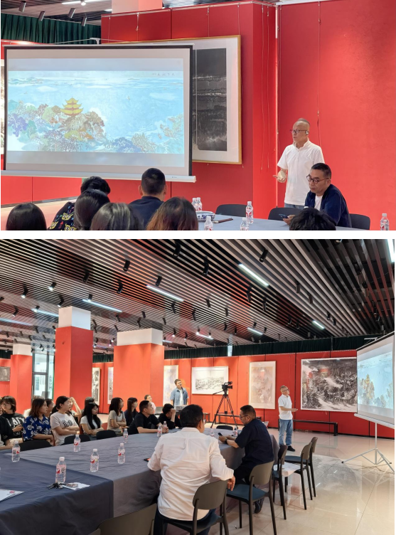 2024年5月11日下午,知名画家肖振中先生应公司邀请,在校区美育空间为伟德victor1946官网登录师生作了题为“《天下洞庭》作品创作经历与启示”的讲座,讲座由经理李婷婷主持。