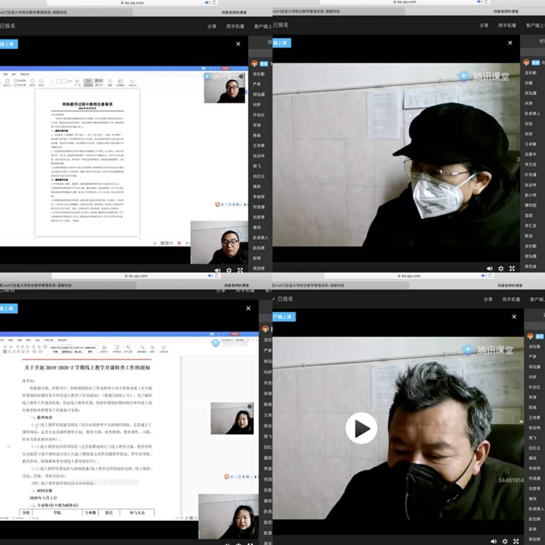 示范结束后,老师们依次线上连麦,分享个人选用平台操作方法,其中有:雨课堂、课堂派、钉钉、腾讯会议等。大家互相借鉴,耐心学习各类平台使用方法,为了防止网络出现拥挤,每一位老师都从中选取了两套适合自己的线上授课平台,一套为标准授课平台,一套为备用平台。
