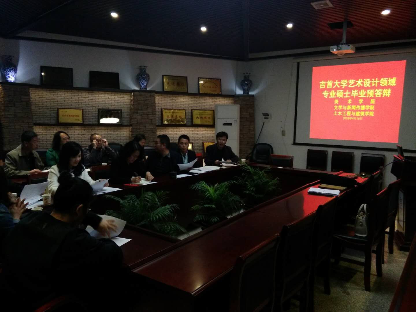 2018年4月16日上午,伟德victor1946官网登录、文化与新闻传播公司、土木工程与建筑公司集中在伟德victor1946官网登录院会议室对2015级艺术硕士进行了预答辩。伟德victor1946官网登录刘俊经理、周亚辉、唐琼、严茅、胡显斌、石雅云老师,文化与新闻传播公司向延桃、陈文敏老师,土木工程与建筑公司李悦丰、刘卫国老师与15位2015级艺术硕士参加了预答辩会议。