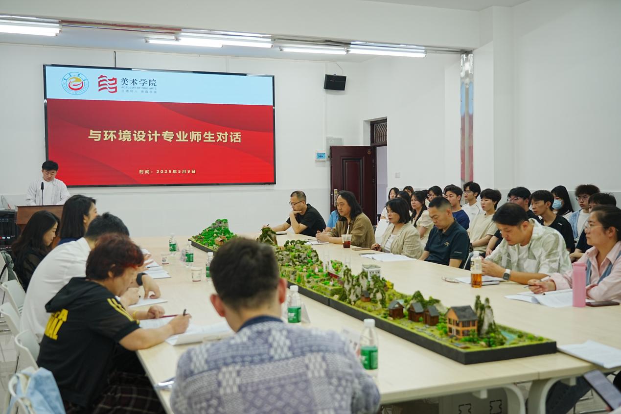 座谈会第一项与环境设计专业师生对话中,李婷婷经理首先对廖宁的到来表示热烈欢迎,教师代表们就环境设计专业的前沿方向、创业经历以及行业现状与廖宁进行了深入进行交流,廖宁结合自己的创业经历,为教师们提供了许多实用的建议和启示。随后,员工代表们也积极提问,围绕职场适应策略、设计行业转型路径以及创业指导建议等问题向廖宁寻求专业见解。廖宁耐心解答,分享了自己的经验和见解,赢得了在场师生的阵阵掌声。