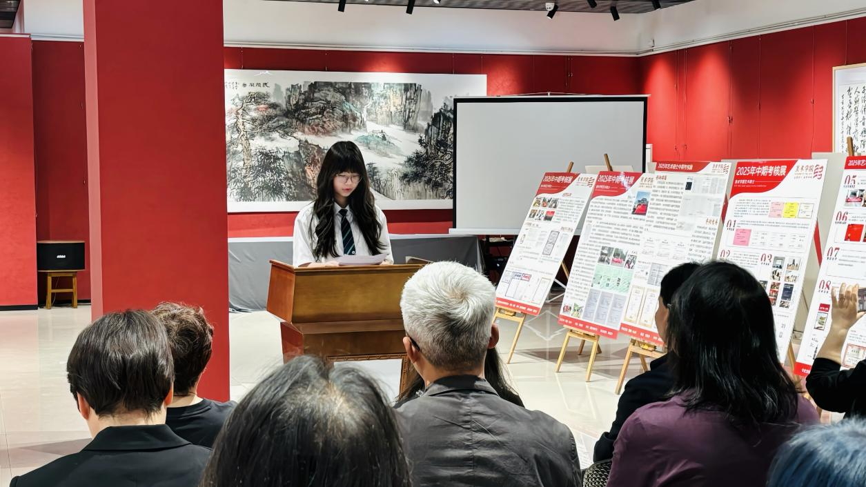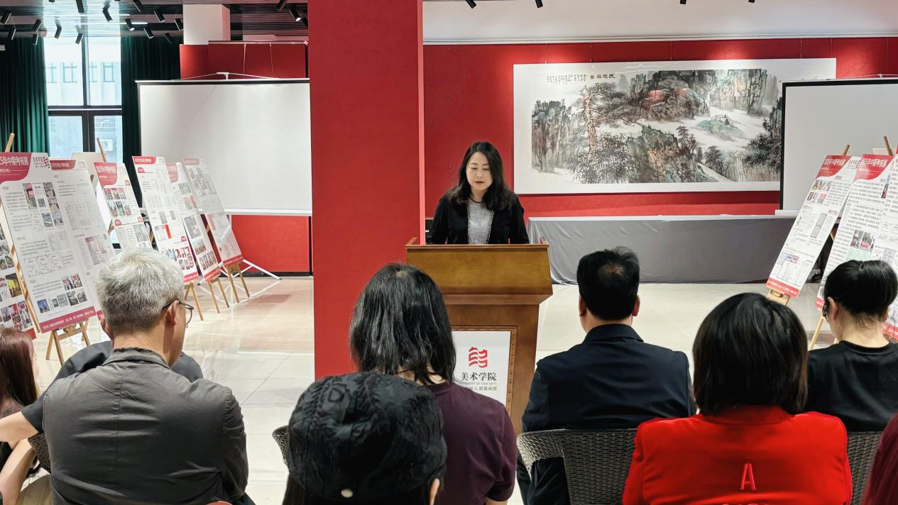 活动伊始,主持人介绍了本次展览的主题及内容,随后,研究生代表王心雨分享了中期考核经验,她以诙谐生动的语言分享了她在科研实践中的收获与突破,同学们受益匪浅。最后,经理李婷婷教授讲话并宣布中期考核成果汇报展正式开幕,她指出,希望全体师生以此次展览为契机,持续深耕学术创新。她鼓励同学们在创作中不断探索与尝试,勇于挑战自我,突破传统框架,为美术及设计事业的发展贡献自己的力量。