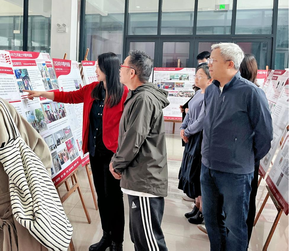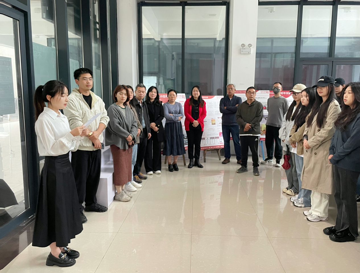 首先,主持人介绍了本次展览的主要内容,接着,研究生代表龙美玲做中期考核经验分享。通过她幽默风趣的经验分享,同学们受益颇多。最终,在热烈的掌声中,李婷婷经理宣布中期考核成果汇报展正式开幕。开幕式后公司领导、老师以及同学们参观了本次展览,各位导师也在观展过程中对作品中的闪光点和存在的问题一一指出,使每位同学能够更加明确自身学习和努力的方向。