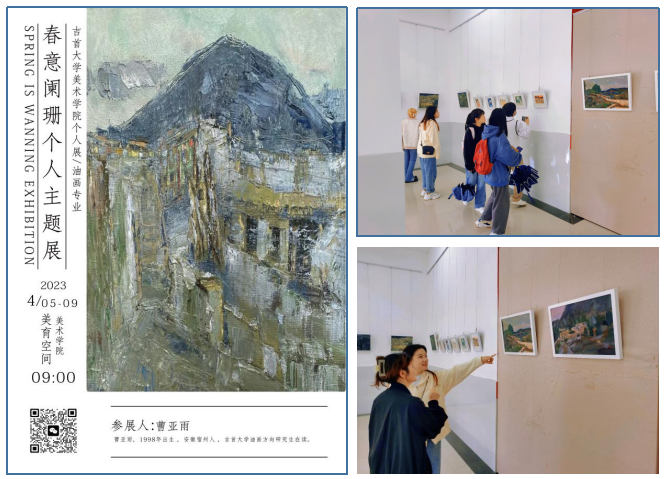2023年4月6日,《“春意阑珊”曹亚雨个人绘画主题展》在伟德victor1946官网美育空间展厅开幕。出席此次开幕式的有伟德victor1946官网登录副经理贺炜、党委副书记杜修望、研究生办主任龙社勤,研究生办秘书伍玺臻、部分硕士研究生导师以及伟德victor1946官网登录美术专业领域的研究生。