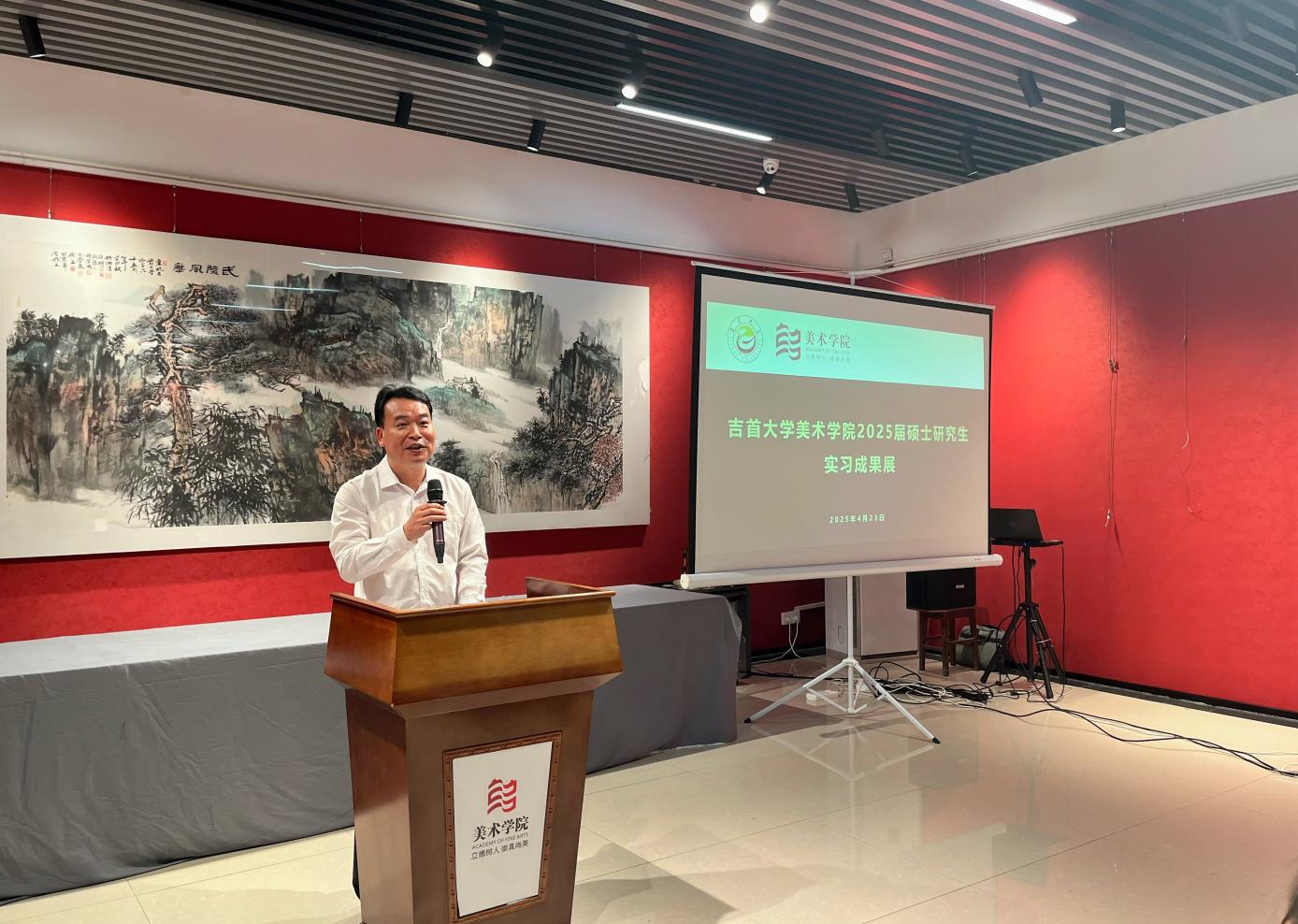 2025年4月23日上午9时40分,2022级研究生实习成果展开幕式在美育空间举办,开幕式由2022级研究生阮雯雯主持,公司党委书记田建林、研究生办主任张业林、教务秘书彭小伟,部分导师及在校研究生参加了此次开幕式。