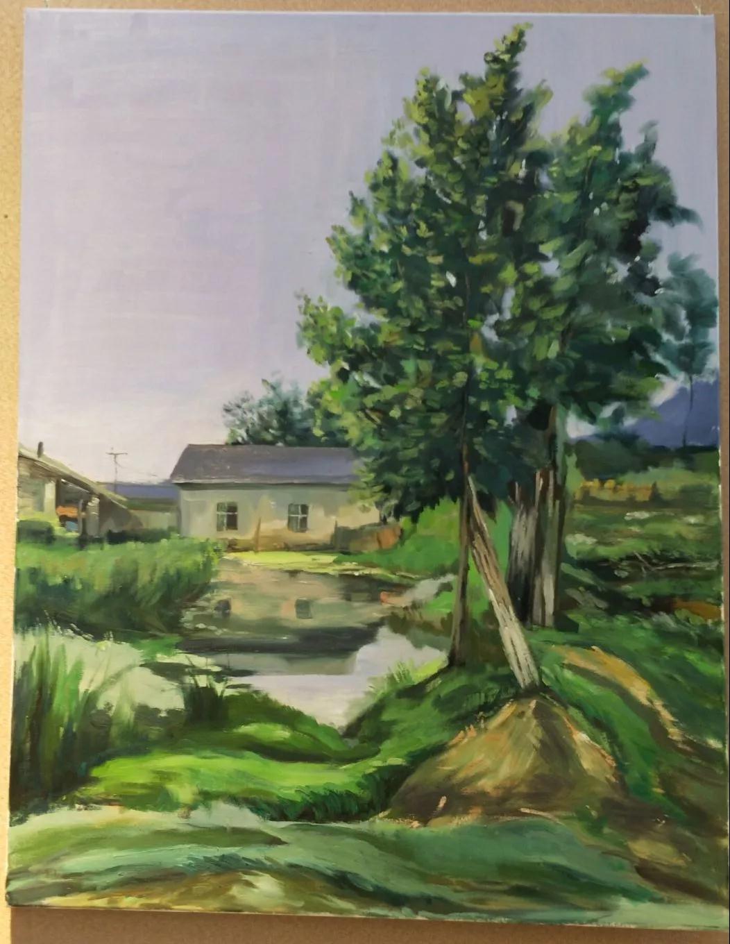 | 张秋莹《小山村》 指导老师:田鲁研究方向:美术学(油画) |