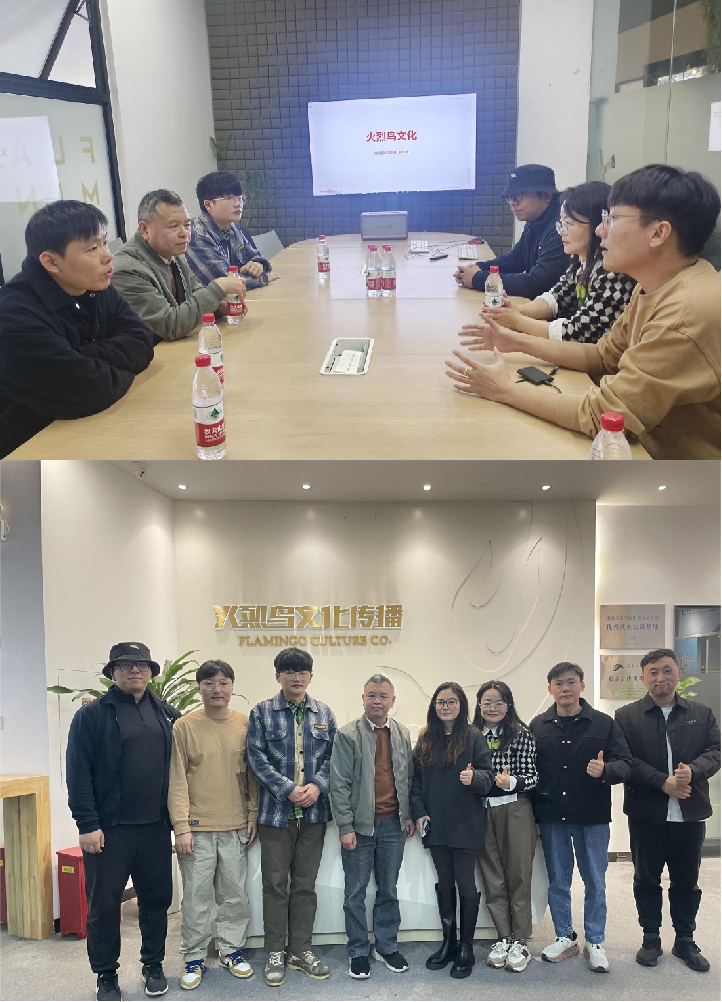 本次活动首先走访了火烈鸟文化公司(FLAMINGO CULTURE CO.),该公司是一家以原创、品质、创新为核心竞争力的文化传播有限责任公司,自创立以来,一直致力于为全国一线卫视及各大顶级网络平台输出优质视频内容,在业内积累了极佳的口碑。企业负责人详细介绍了公司的发展历程、核心业务、成功案例以及未来规划,随后,双方就数字媒体艺术专业的人才培养、课程设置、实习实训、就业指导等方面进行了深交流与探讨。