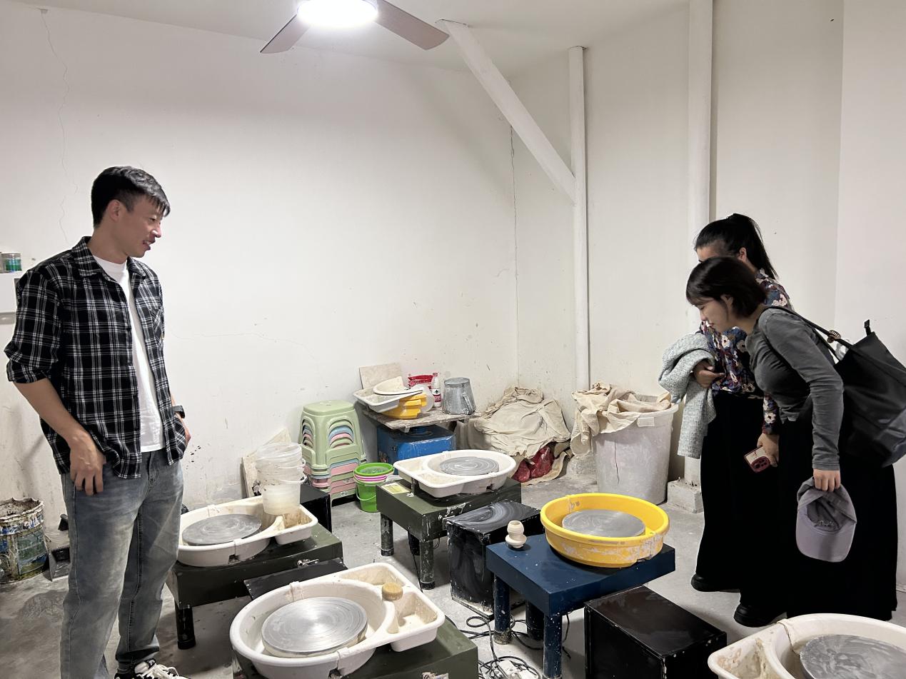 本次活动走访了景德镇市的国家级陈烙铭技能大师工作室及多家私营陶艺工作室和企业,在参观了各企业的核心功能区域后,双方就陶艺工作室的市场定位、运营管理和创新发展进行了深入的交流。
