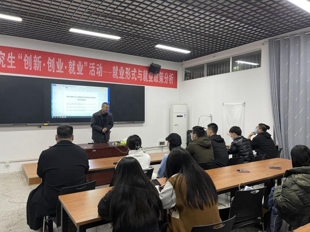 2021年11月16日晚上19:00,伟德victor1946官网登录举办了“2021年伟德victor1946官网登录研究生创新·创业·就业系列活动之就业形势与就业政策分析”讲座。研究生党支部党员赵二保担任志愿者活动服务组长,服务工作内容为制作海报,发布活动简介、时间、地址和撰写的新闻稿等。